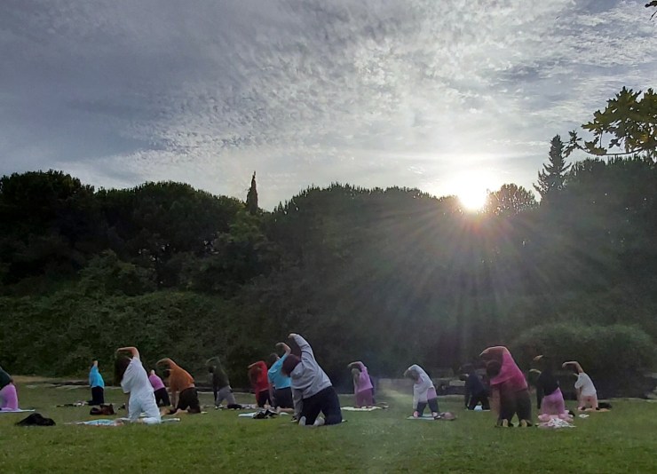Aula de Yoga ao ar livre, inserida nos nossos horários regulares, mas aberta a inscrição ao público em geral a partir dos 12 anos